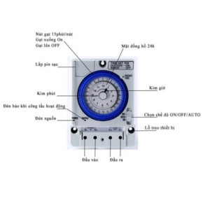 -Thông qua việc nối dây vào nguồn điện AC 220V và thiết bị. Lần lượt ấn các thanh gạt trên mặt số (mỗi thanh gạt tương ứng 15 phút ON hoặc OFF), thiết bị điện của bạn sẽ tự động vận hành theo đúng ý muốn của bạn mỗi ngày một cách hoàn toàn tự động, an toàn và vô cùng chính xác.!