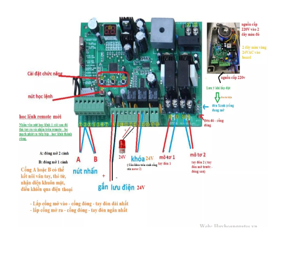 -Vặn ngược chiều kim đồng hồ để khóa tay đòn khi có điện để tiếp tục đóng mở cửa bằng remote điều khiển từ xa nhé